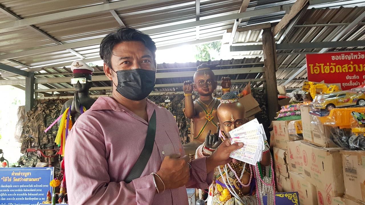 วันที่ 13 พ.ย. 2564 ผู้สื่อข่าวรายงานว่า ที่บริเวณสวนป่าบ้านเสาร์ 5 เลขที่ 129 หมู่ที่ 4 ตำบลสาวร้องไห้ อำเภอวิเศษชัยชาญ จังหวัดอ่างทอง พบชาวบ้านต่างเดินทางมาขอโชคลาภ ส่องตัวเลขที่ขันน้ำมนต์ แม่แก้วเรือนทอง ต้นตะเคียนในห้องกระจกติดแอร์ ในช่วงวันใกล้หวยออก พบเห็นน้ำตาเทียนตีเป็นตัวเลข 362 พร้อมทั้งจุดประทัดเสี่ยงทายได้ตัวเลข 469, 93 ขณะที่บรรดาคอหวยไม่พลาดนำไปเสี่ยงดวง