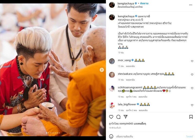 โดยก่อนหน้านั้น เก่ง โพสต์ภาพร่วมทำบุญพร้อมข้อความด้วยว่า เมตตาบารมี หลวงปู่ทอง อายุ ๑๐๖ ปี เจ้าคุณพระราชมงคลวุฒาจารย์ (หลวงปู่ทอง สุวิชาโน) วัดดอนไก่ดี จ.สมุทรสาคร เป็นกำลังใจในชีวิตได้มากราบท่าน ขอบพระคุณอาจารย์เชียงมากๆครับ ดีใจ ปิติใจ ได้ร่วมบุญ สวดมนต์กับ อาจารย์เชียงและคณะศิษย์อาจารย์เชียง เอาบุญมาฝาก อนุโมทนาบุญสาธุร่วมกันนะครับ กัลยาณมิตรทุกท่าน