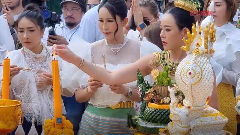 เมื่อเวลา 11.39 น. วันที่ 7 ก.พ.2566 ผู้สื่อข่าวรายงานว่า ที่ลานบวงสรวงวังนาคินทร์ เกาะคำชะโนด บ้านโนนเมือง ต.บ้านม่วง อ.บ้านดุง จ.อุดรธานี หนิง ปณิตา ธรรมวัฒนะ ดารานักแสดง ผู้จัดละคร และ CEO ผลิตภัณฑ์เสริมอาหาร Ozy (โอซี) เดินทางมาทำพิธีบวงสรวงใหญ่ พ่อปู่ศรีสุทโธและย่าประทุมมา เปิดโภคทรัพย์รับเงินล้าน ของผลิตภัณฑ์ลดน้ำหนักที่เจ้าตัวเป็นผู้บริหารอยู่ โดยมีปู่เขียว สุวัฒน์ เกิดดี มาเป็นพ่อพราหมณ์ทำพิธีให้ งานนี้คุณหนิงจัดเต็มเครื่องบวงสรวงชุดใหญ่