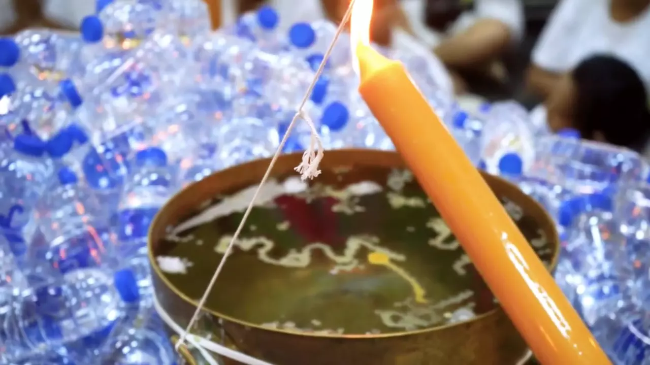 นักเสี่ยงโชคไม่พลาดแห่ส่อง "เลขเด็ดงวดนี้" จากน้ำตาเทียนขันน้ำมนต์ พิธีสวดเจริญพระพุทธมนต์วัดดังเมืองคอน หวังลุ้นโชคงวด 31/7/66