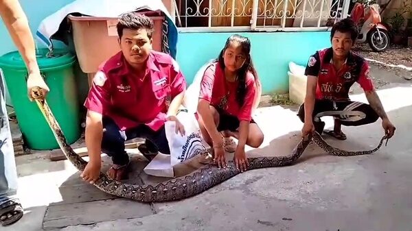 ท่อระบายน้ำ เรียกเพื่อนบ้านมาช่วยเปิดฝา แทบช็อก งูเหลือม ยาวเกือบ 4 เมตร ท้องใหญ่เหมือนเพิ่งกินแมวเข้าไป ติดอยู่เลื้อยไปไหนไม่ได้ แห่ส่องบ้านเลขที่ลุ้นโชค