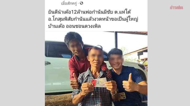 ที่มา : เฮลั่นหมู่บ้าน 12ล้าน งวดนี้รวยกันแล้ว พ่อกำนัน โกสุมพิสัย ถูกหวยรางวัลที่1 แห่ยินดี (khaosod.co.th)