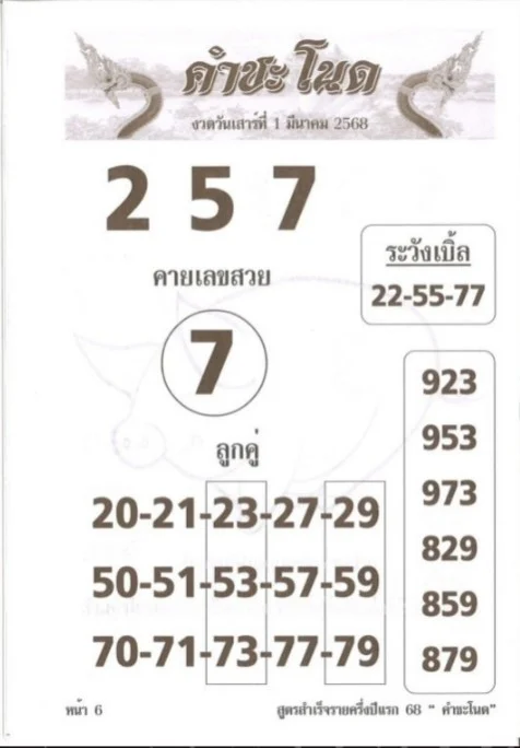 เลขเด็ด คำชะโนด งวด 1 มีนาคม 2568 มาแล้ว! หวยพญานาคเผยนัมเบอร์สวย พร้อมเตือนเลขเบิ้ลอันตราย!